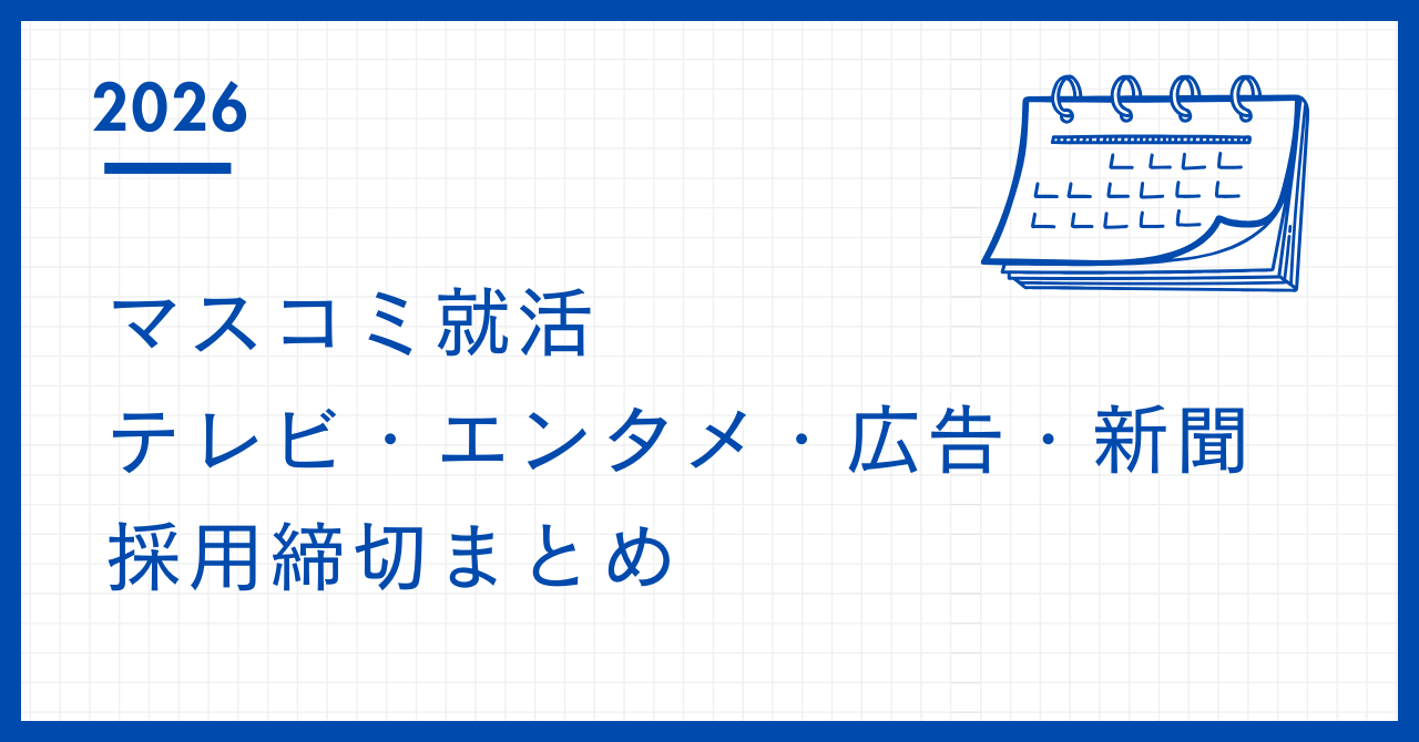 【27卒マスコミ】テレビ・エンタメ・広告・新聞 採用締切まとめ(3/18更新)|明日3/19はテレビ局・電通の超重要締切日!