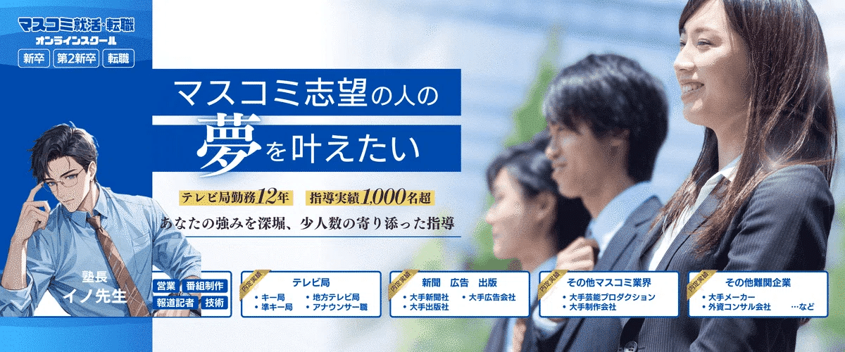 本気でマスコミ内定、テレビ局内定を目指す人は、ぜひ公式LINEからお問い合わせください。(27卒生あと若干名募集)