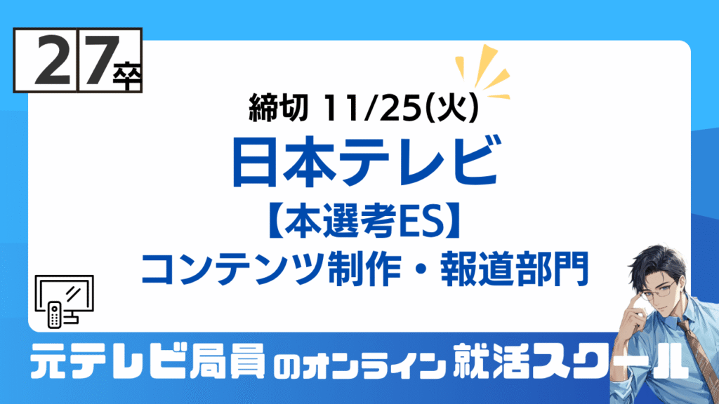 【テレビ局志望者必見】日本テレビES解説講義を開催します(参加無料)