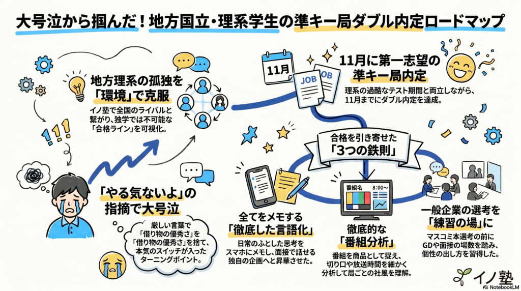 【27卒イノ塾内定者2】大号泣から始まった、地方国立・理系学生の準キー局ダブル内定|note