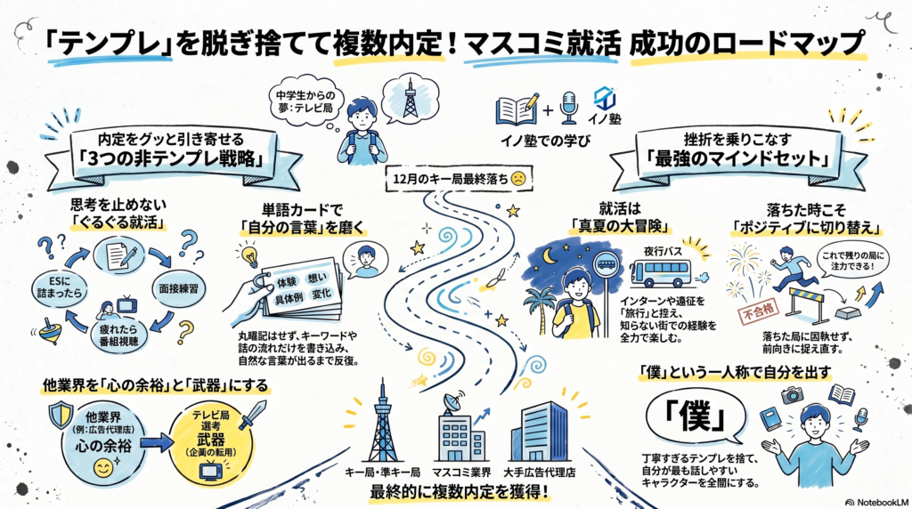 【27卒イノ塾内定者4】”テンプレ”を脱ぎ捨ててキー局準キー局広告複数内定した大学生の就活記録|note