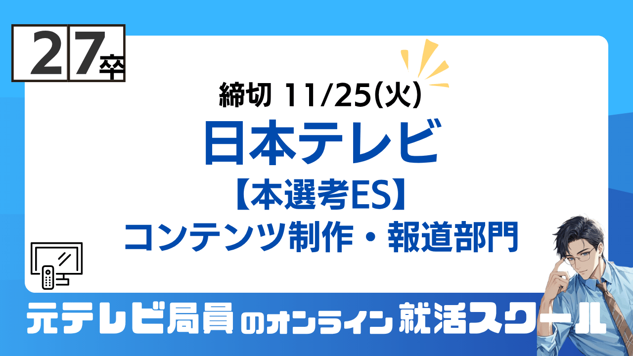 【テレビ局志望者必見】日本テレビES解説講義を開催します(参加無料)