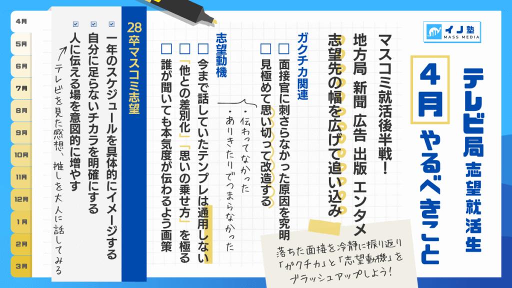 27卒28卒マスコミ・テレビ局就活|4月にやること完全ガイド【就活後半戦の戦い方】