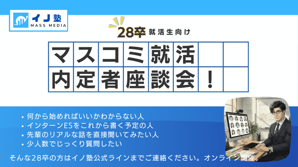 28卒のマスコミに行きたい就活生だけが無料で参加できます。